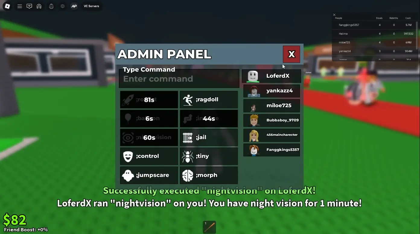 Algunos servidores personalizados usan scripts en Lua para hacer que ciertas palabras desencadenen acciones colectivas, como que todos los jugadores comiencen a bailar al unísono o repitan una frase determinada. Estas mecánicas, aunque banales, alimentan directamente al fenómeno del brainrot, ya que promueven una conducta colectiva absurda que se vuelve adictiva y repetitiva. Sin acceso administrativo o permisos, estos comandos solo funcionan si el juego específico los soporta.